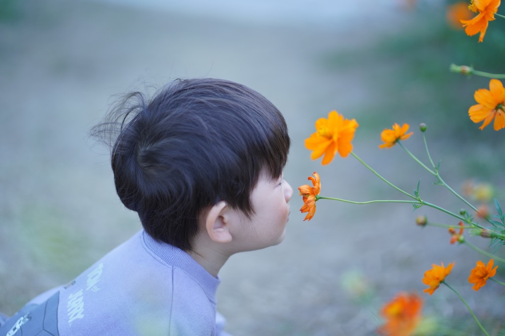 そして、お花をクンクンと嗅ぐかわいい息子も写真に納めて満足。🥰